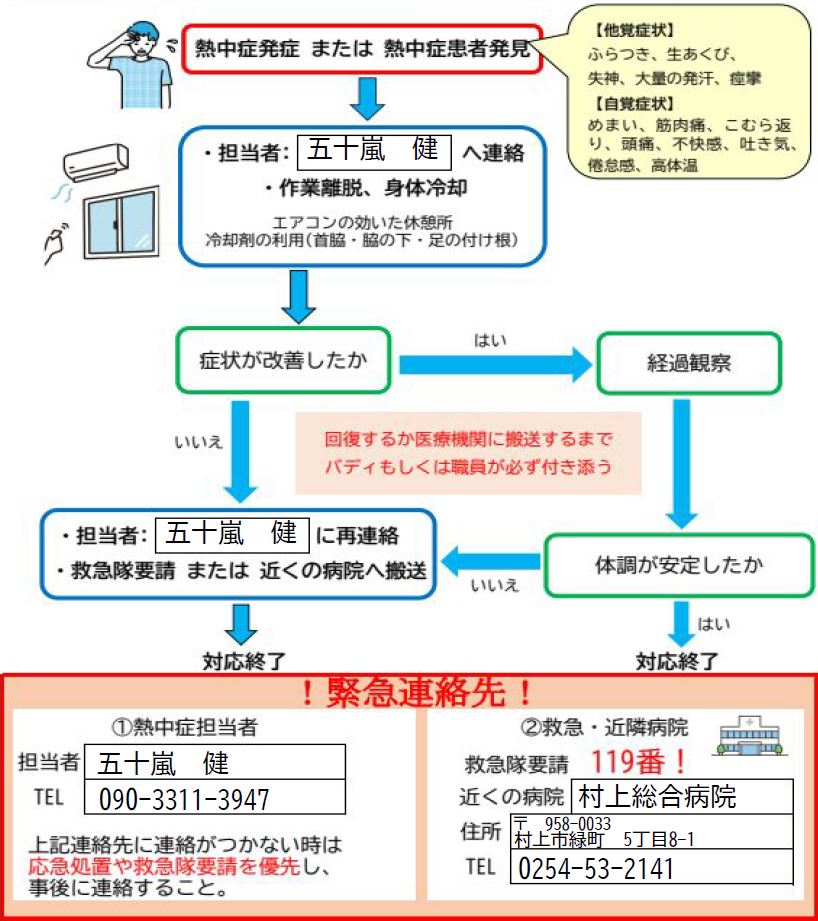 4. 作業中止時の集合・避難(待機)場所は現場事務所とし、点呼をとり人員確認を行う。